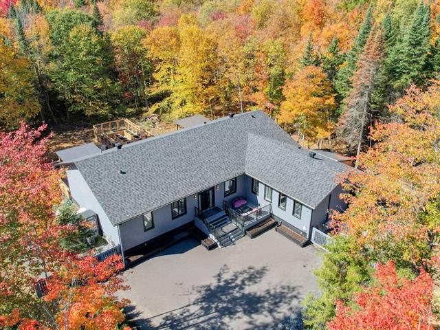 At the top of the mountain in Sainte-Adèle, in the heart of the Laurentians, this prestigious Post and Beam property combines luxury, comfort, and nature in perfect harmony with its surroundings. Built with noble materials and exceptional craftsmanship, it captivates with its unique architecture and timeless design. The vast terrace, sheltered by a majestic Whistler- and Colorado-style porch, offers a spectacular setting to admire panoramic mountain views. The beautifully landscaped grounds complete this one-of-a-kind picture, making this residence a true exceptional home.